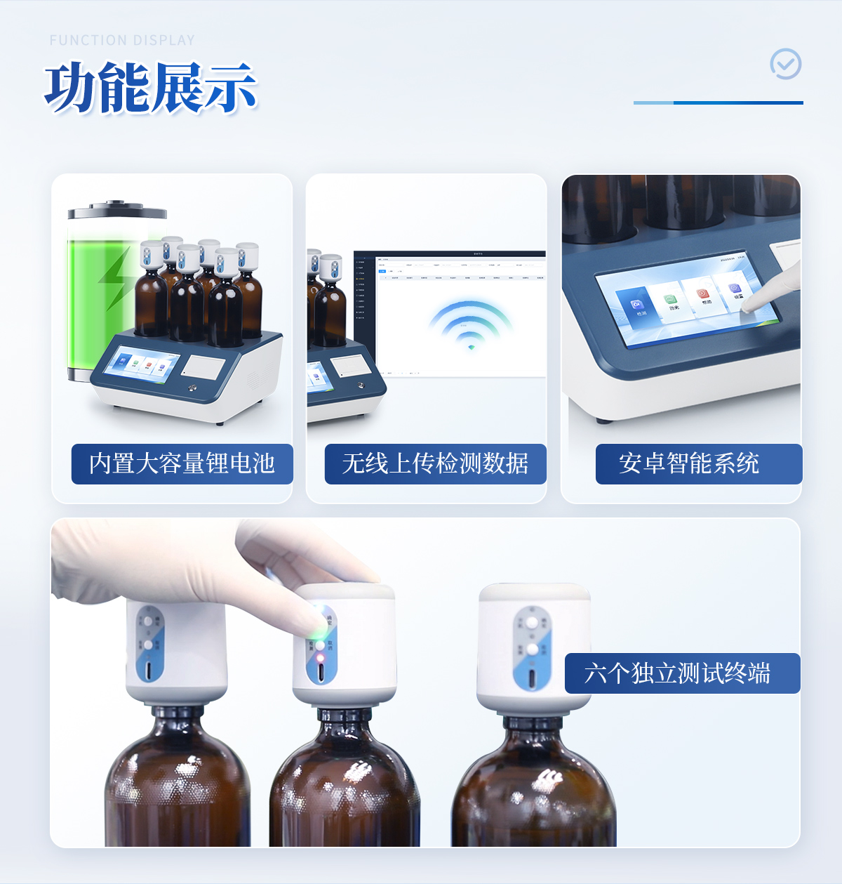 5、无需人工换算,仪器可直接显示BOD浓度值,多组数据可在统一界面显示;