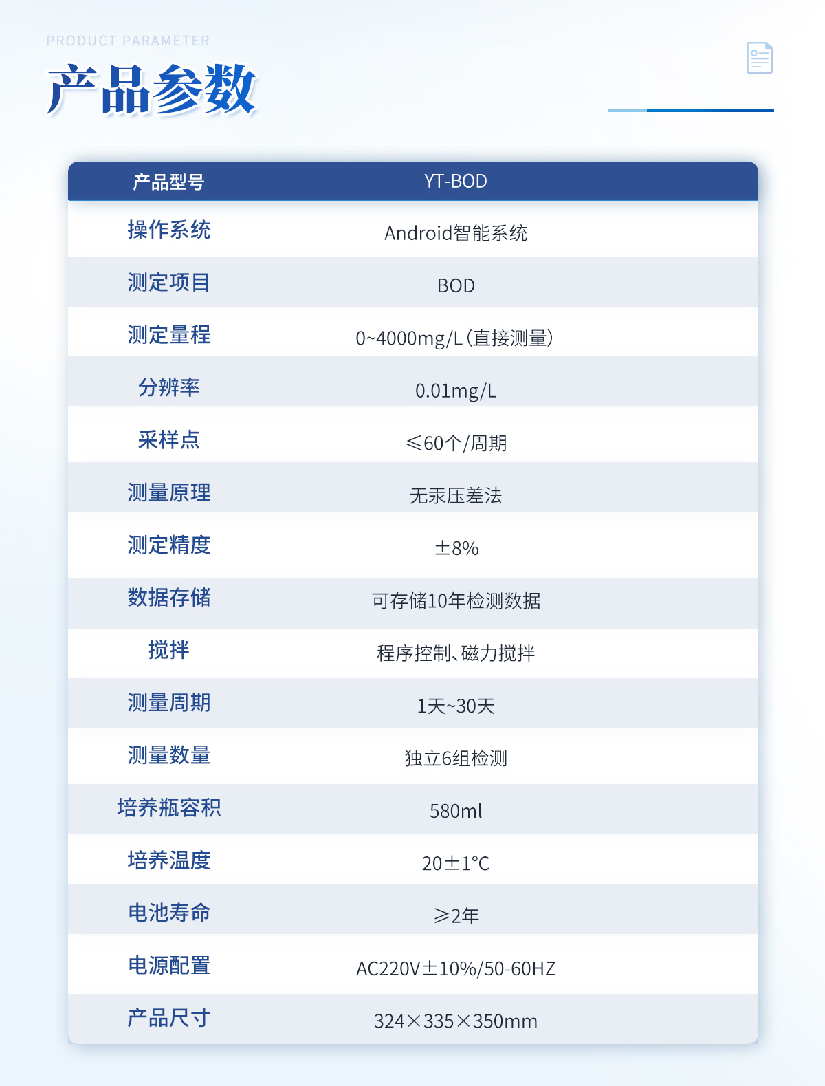 生化需氧量(BOD)测定仪是根据国家标准《HJ505-2009》5日培养法,模拟自然界中有机物的生物降解过程,采用简单、安全、可靠的无汞压差感测法测量水中BOD浓度;全智能化设计,**的研发工艺和设计制造,实验过程无需实验人员值守;适用于排污企业、环境监测、污水处理厂、第三方检测机构、科研、高校等领域的生化需氧量测定。