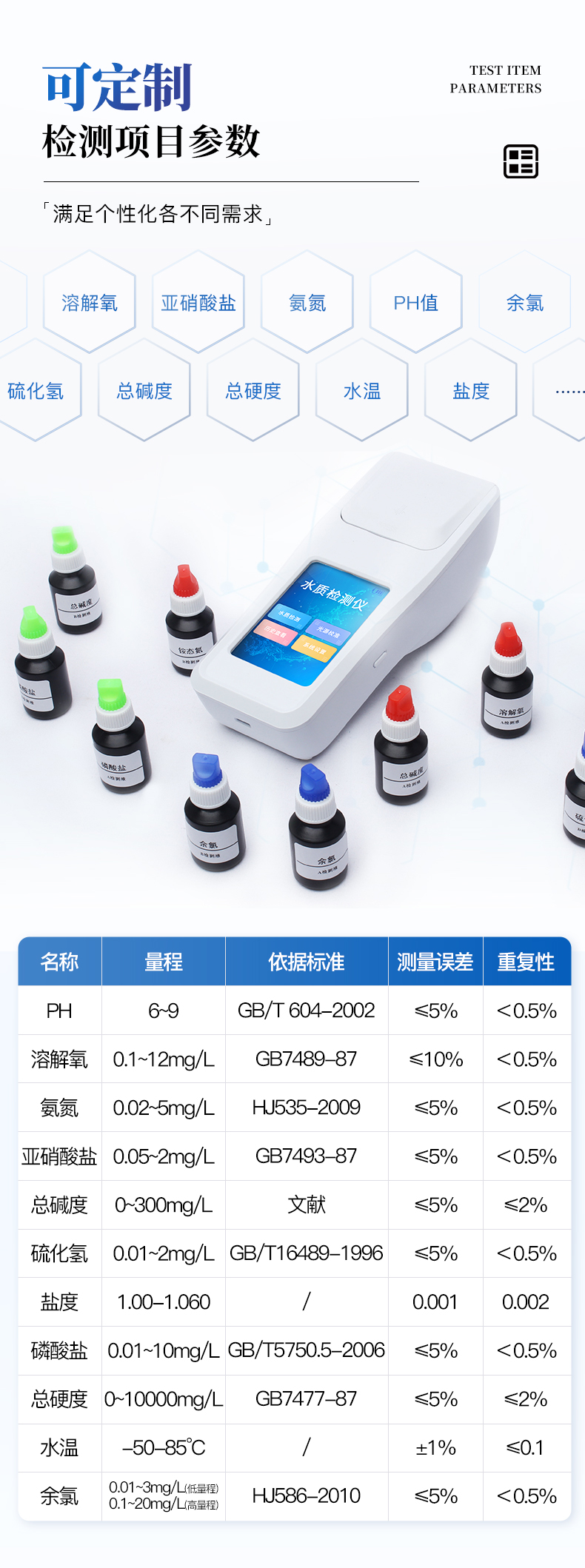 适用于水产养殖、河流监测、生产监测、纯净水厂、自来水厂、生活污水处理厂、工业污水、游泳场馆、水源保护、科研实验等。