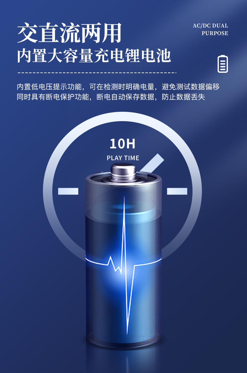 20、内置低电压提示功能,可在检测时明确电量,避免测试数据偏移,同时具有断电保护功能,断电自动保存数据,防止数据丢失。