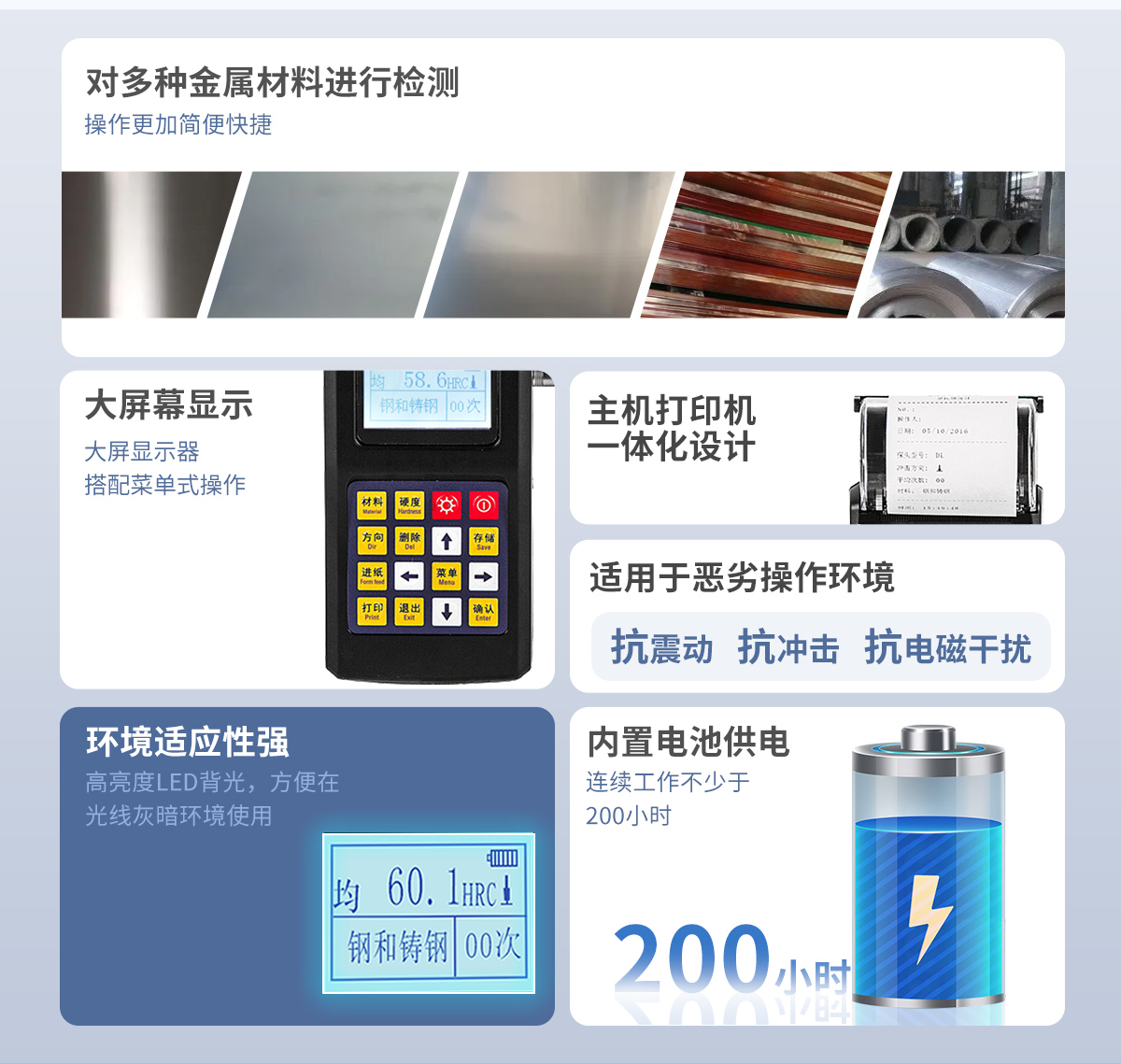 ● 依据里氏硬度测量原理,可以对多种金属材料进行检测,测值准确稳定;