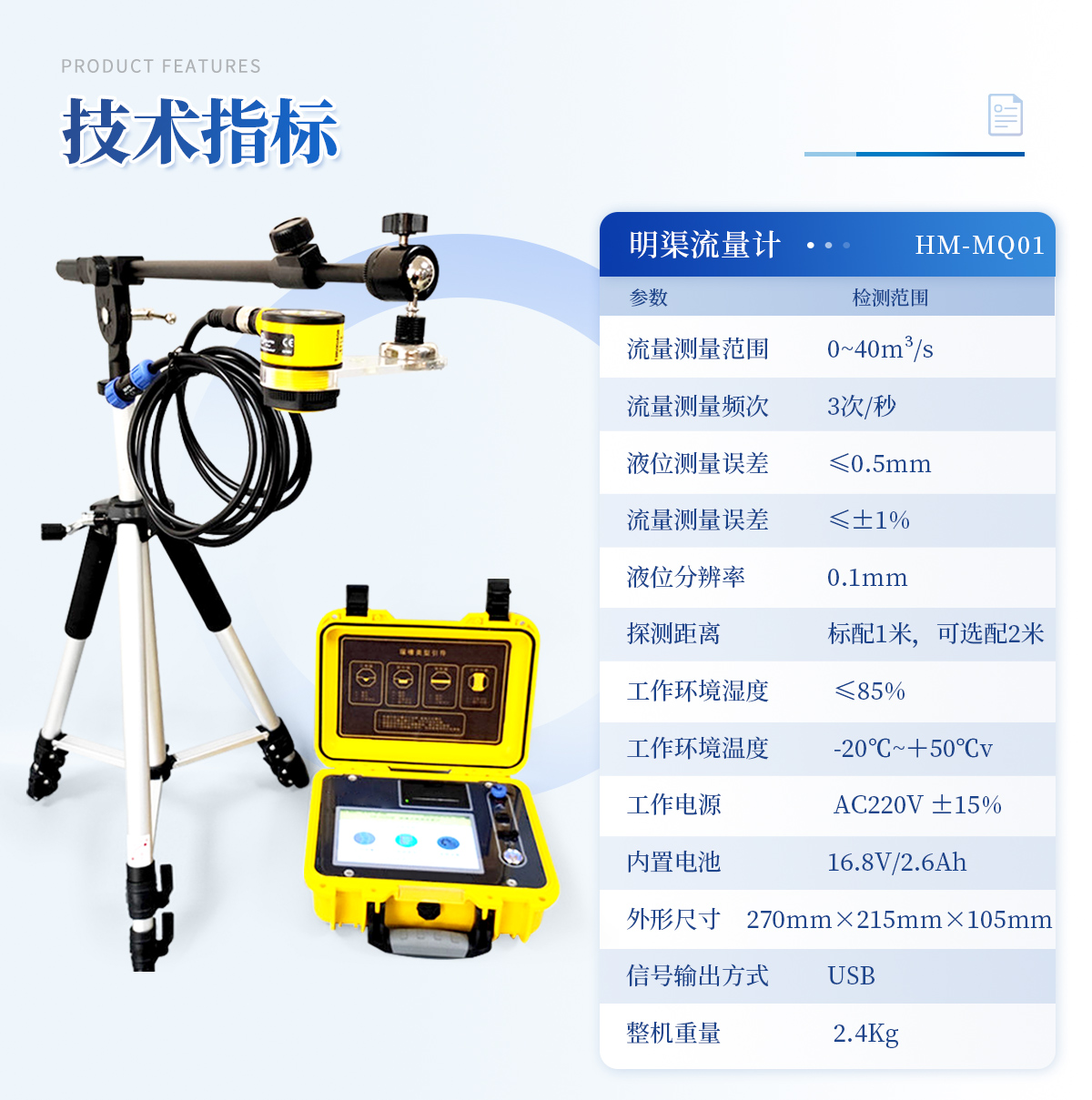 明渠超声波流量计 YT-MQ01 技术指标: