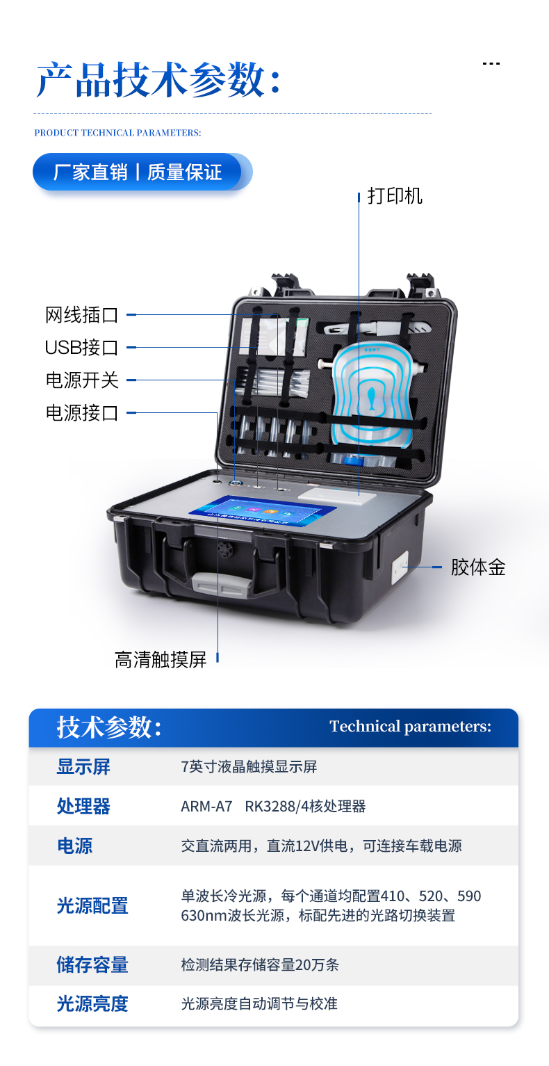 6、一体化便携式快检设备,满足现场及流动检测使用需求,能够在同一软件下实现所有检测项目的检测,并可通过同一窗口直观显示检测结果。