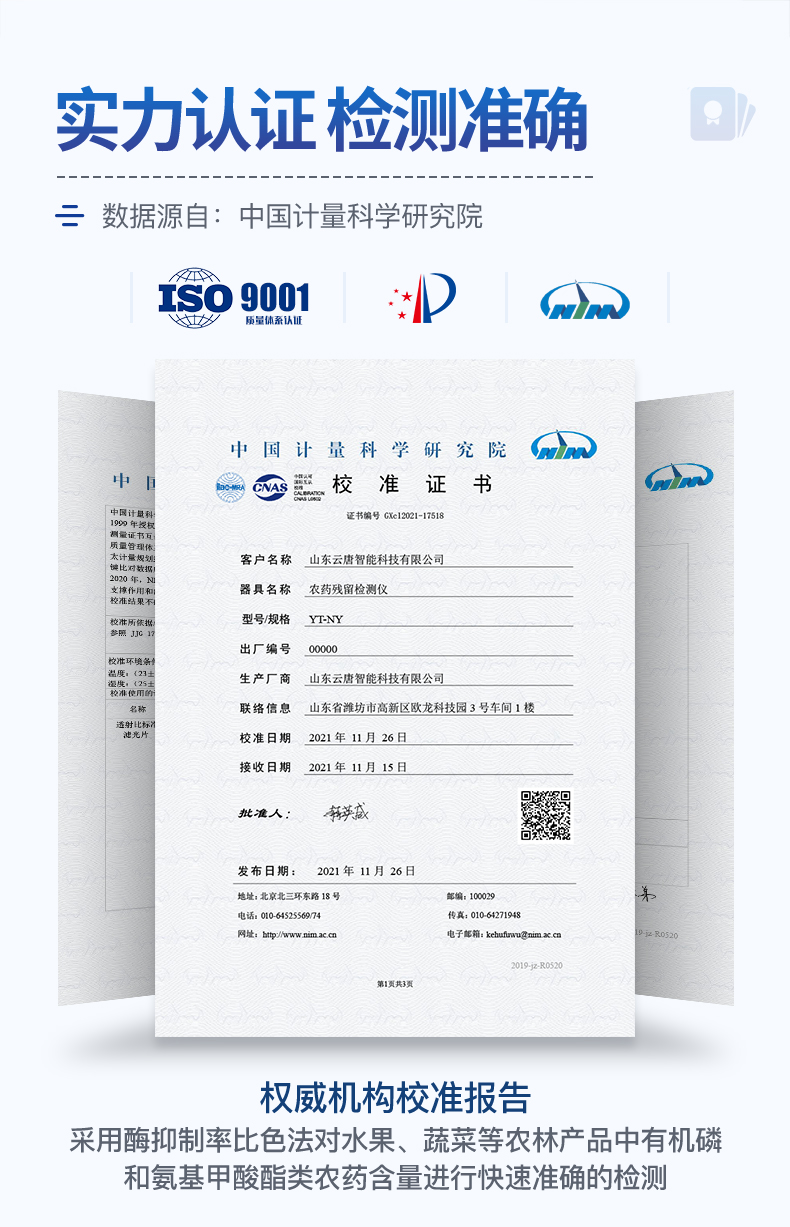 广泛应用于主要用于蔬菜、水果、茶叶、粮食、农副产品等食品中有机磷和氨基甲酸酯类农药残留的快速检测;此外还可用于果蔬茶生产基地和农贸批发销售市场现场检测,餐馆、学校、食堂、家庭果蔬加工前的安全速测等。