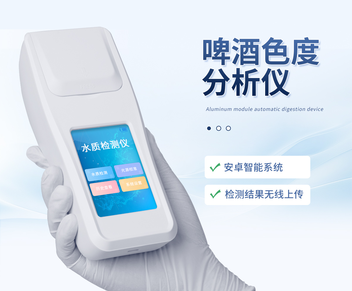 啤酒色度测定仪采用铂-钴标准色度法,用于测定溶解状态的物质所产生的颜色,仪器采用国家标准GB5750中所规定的铂-钴色度标准溶液进行标定,采用铂-钴色度作为计量单位。