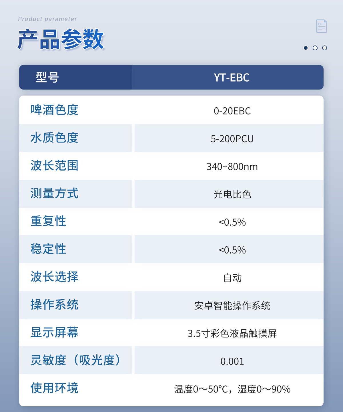 啤酒色度仪 YT-EBC 技术参数: