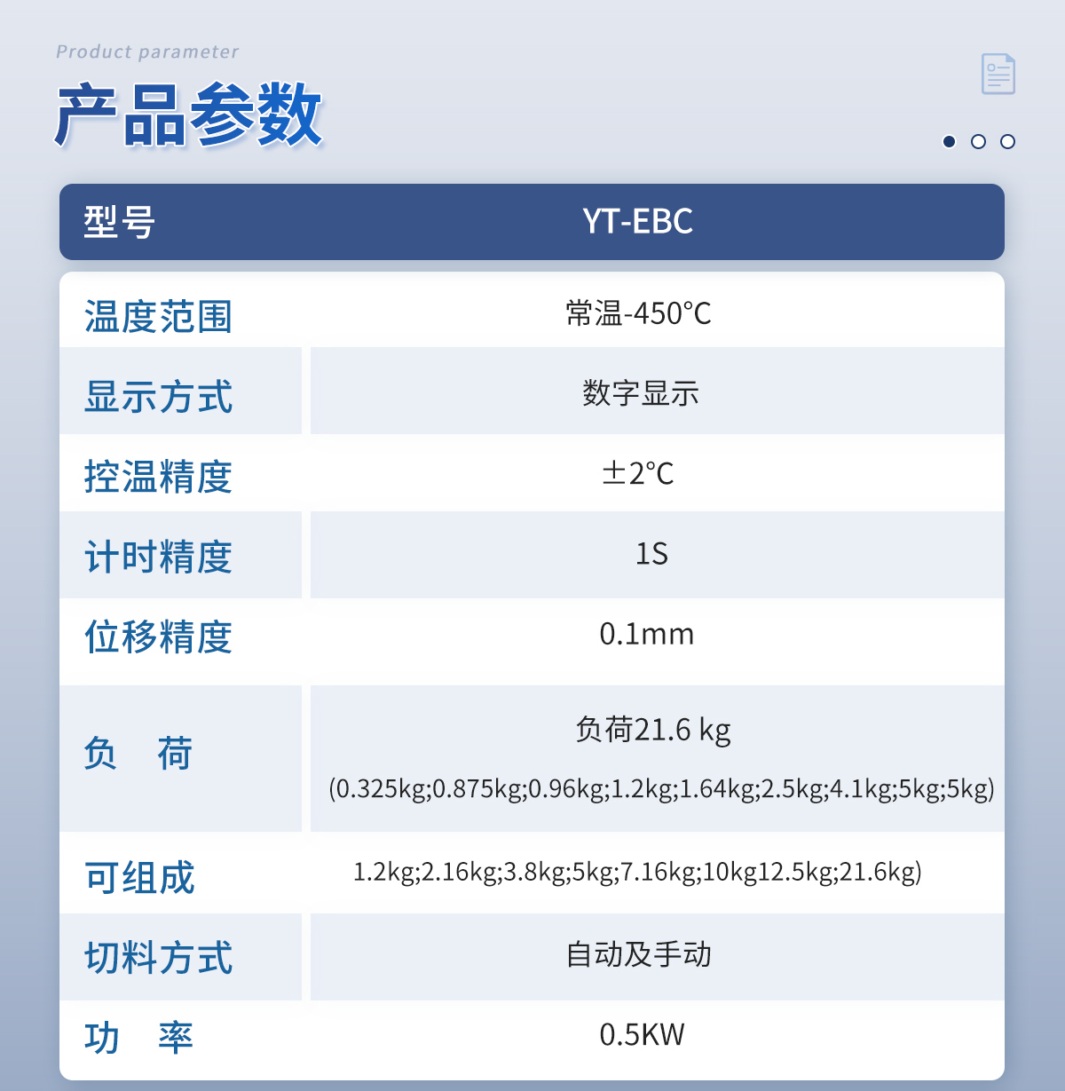 负荷:负荷是砝码、托盘和活塞重量之和,精度为±0.5%。