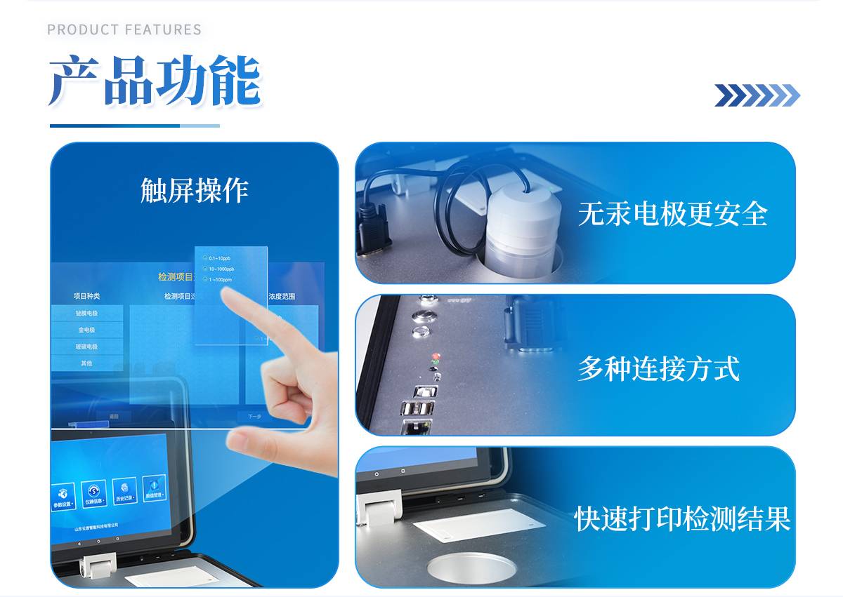 可快速检测重金属铅、镉、铜、锌、汞、砷等。