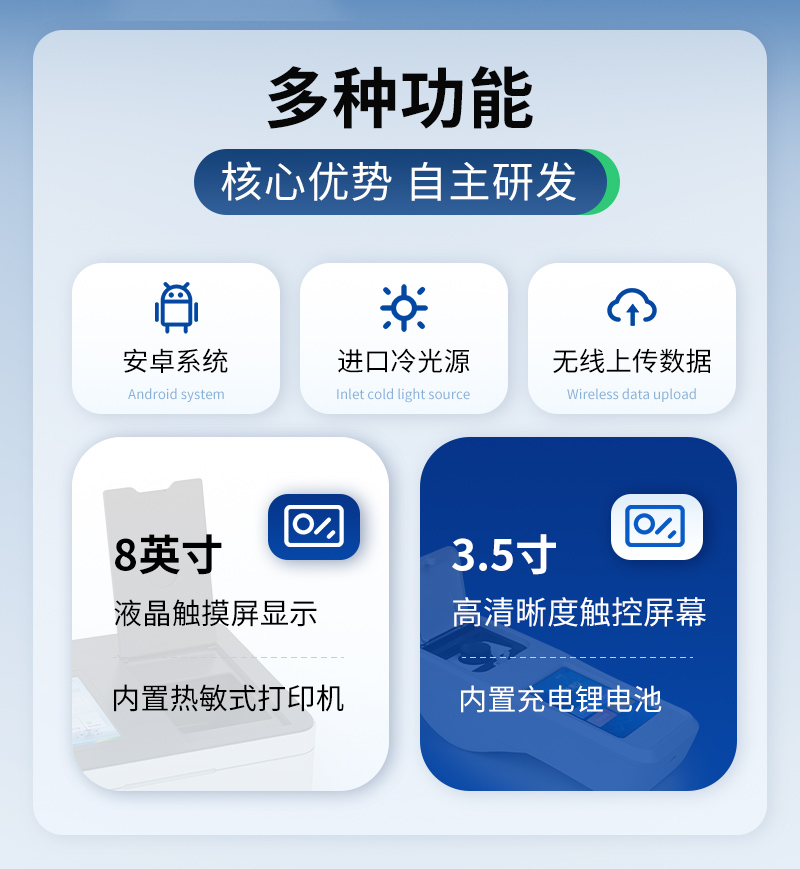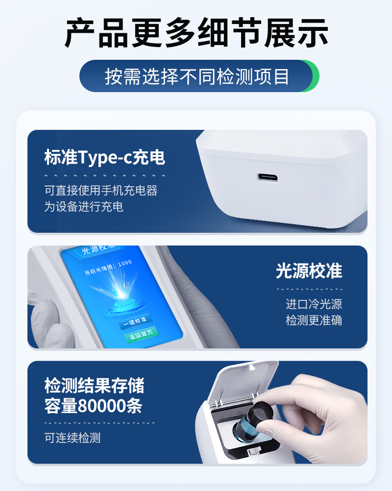 2.采用分光光度的光电比色原理, 应用方便试剂,水样放入试剂反应后几分钟即可读数,数字显示测定值。