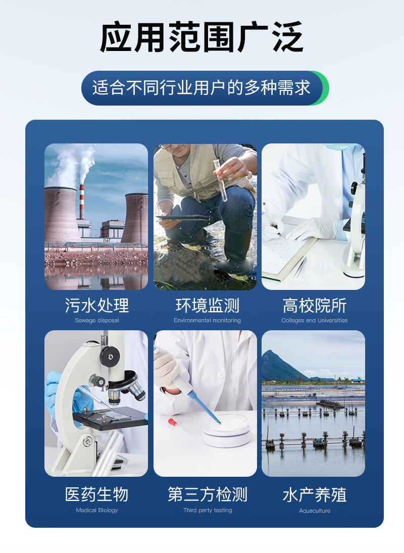 适用于大、中、小型水厂及工矿企业、生活或工业用水的亚硝酸盐浓度检测,以便控制水的亚硝酸盐达到规定的水质标准。