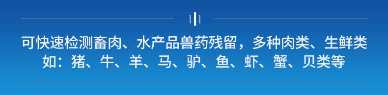 抗生素残留:四环素类、硝基呋喃类、磺胺类、β-兴奋剂类、沙星类、磺胺类、喹诺酮类,甲砜霉素,氟苯尼考,金刚烷胺、替米考星、庆大霉素、林可霉素、链霉素、恩诺沙星、环丙沙星、头孢啦啶、青霉素、阿莫西林等