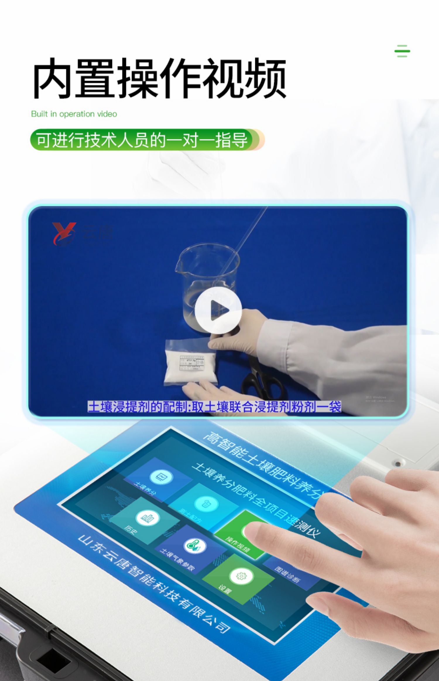 12、仪器系统内带有样品前处理操作视频,各种样品检测方法点击视频模块即可观看,检测人员无需自学说明书,指导教学方便快速,方便新手快速操作。