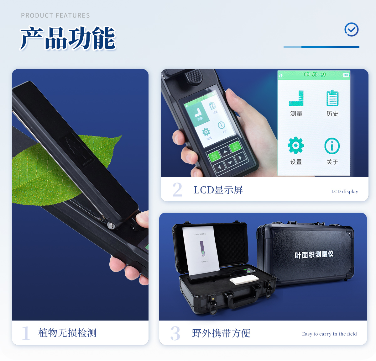 仪器可以直接测量叶片长度、宽度和面积,并集成了GPS定位以及4G无线传输系统,增加了Type-C接口,可将测量数据和定位信息同时导入计算机和云数据平台,方便广大科研者对数据的进一步处理。