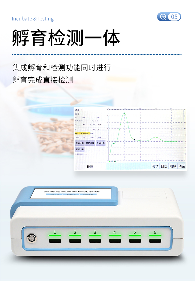 | 一体化设计,集成孵育和检测功能同时进行,孵育完成直接检测; | 全中文 7英寸高清液晶显示,触摸屏操作; | Android 系统,支持在线升级,可WIFI联网; | 检测原理:荧光定量免疫层析法; | 6通道设计,可同时进行一种或多种指标的检测,6个独立检测单元,检测效率高,并且互不干扰; | 具有二维码自动识别系统,可直接识别检测项目、检测流程等信息; | 仪器自带热敏打印机,检测结果可实时打印; | 具有检测数据存储(存储数量不少于 10000 条)、查询、批量数据处理和打印功能; | 仪器≥2 个USB 接口,可拷贝结果及原始数据,具有 wifi 接入模块,可通过无线连接网 络实现数据上传; | 分钟内达到工作状态(37℃),封闭系统,不受外界环境(光、热)干扰,工作环境温度:0-30℃; | 真菌毒素和重金属可同时进行前处理,并同时上机检测; | 仪器配备全套前处理设备,拉杆箱设计,即可用于实验室检测可以外出携带检测 | 相对极差≤10%; | 重复性 CV≤1%; | 批间变异≤3%; | 尺寸310x210x93mm |